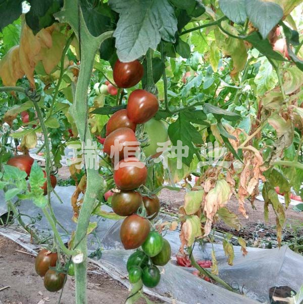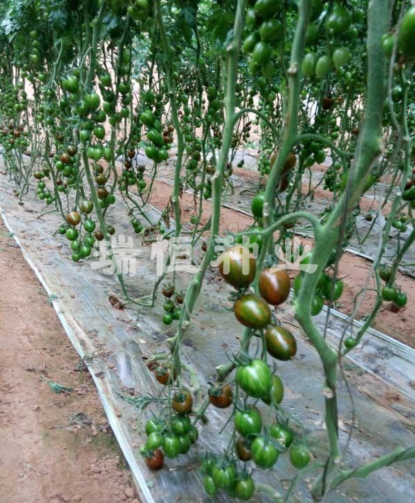無限生長(zhǎng),植株長(zhǎng)勢(shì)強(qiáng)壯,每穗結(jié)果12-25個(gè),果實(shí)卵圓型,成熟果黑紫色,帶綠色條紋,果皮厚,硬度高,不裂果,口感香甜,產(chǎn)量豐高,適宜長(zhǎng)途運(yùn)輸,是邊貿(mào)出口特色番茄的品種,適合越冬早春保護(hù)地種植。