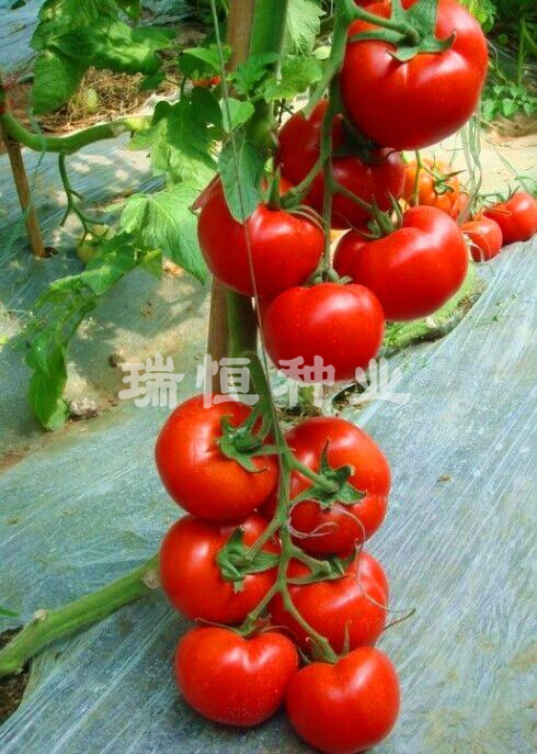 以色列引進(jìn)雜交一代大紅番茄種子,無限生長型,中早熟品種,植株長勢強(qiáng),耐熱性好,坐果能力強(qiáng),均勻整齊,果實(shí)圓形偏扁,顏色美觀鮮艷,萼片開張肥厚,單果重約230g,果實(shí)硬度好,耐運(yùn)輸,抗TY病毒,灰霉,葉霉病,適宜北方保護(hù)地及南方露地越夏、秋延栽栽培